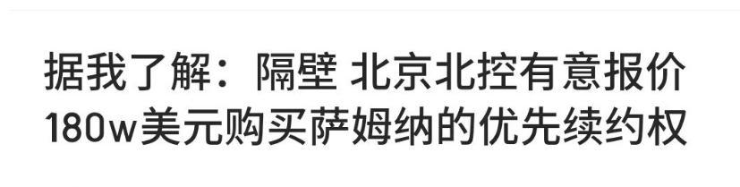 在这个休赛期里,四川男篮一直在兜售萨姆纳的优先续约权,不过由于价格比较高,几支有意萨姆纳的球队询问了价格后,就没有了下文。从知情人透露的消息来看,四川男篮出售萨姆纳优先续约权的价格是180万美元,这个价格甚至要比一些小外援的年薪还要高。再加上需要付给萨姆纳的工资的话,那么球队签下萨姆纳的代价接近300万美元,这肯定不是一些球队能够接受的。不过就在前两天,媒体人“江南的城”透露出了有国企背景的球队想要得到萨姆纳的消息,现在来看的话这支球队正是北京男篮。